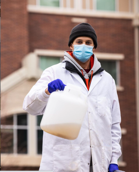 Senior BYU Microbiology student Kevin Torgerson demonstrates the filtering process in Dr Aanderud's lab. Researchers in Dr Zachary Aanderud's lab test wastewater to quantify the concentration of COVID-19 specific RNA by taking samples, inactivating the virus, centrifuging it and then filtering the liquid.